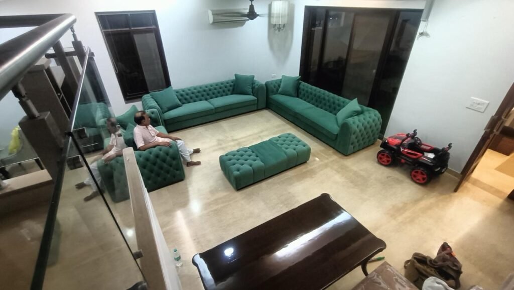 Carefully handcrafted by skilled artisans using a strong wooden frame, high-density foam, and premium finishing for long-lasting comfort and elegance.